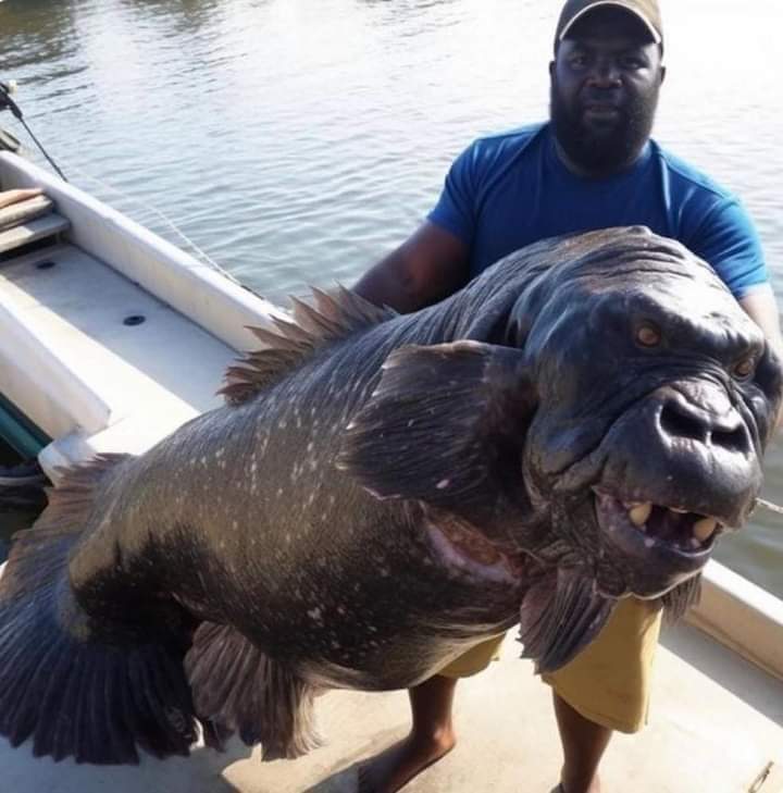 🦍*أثارت صورة لـ سمكة بوجه غوريلا حالة من الجدل عبر السوشيال ميديا بعد أن نشرها مايك هولستون، يدعي أنه متخصص في الحيوانات الغريبة وحارس حديقة الحيوان في مؤسسة الحياة البرية في ماريو وماريا تابرو بـ مدينة ميامي، جنوب شرق ولاية فلوريدا بالولايات المتحدة الأمريكية. كتب مايك هولستون تعليقا على صورة السمكة الغريبة عبر حسابه على تطبيق الصور والفيديوهات “انستجرام”: “يا لها من صورة رائعة لسمكة الغوريلا الجزائرية.. إنها لـ ذكر بالغ، عادة ما يصل طوله إلى حوالي 3 إلى 4 أقدام، ويأكل صغار الحيتان في الشتاء، كما أن حجمه قد بلغ الحد الأقصى!”. وأضاف مايك زاعما أنه وجد السمكة في جزيرة ترينيداد، جنوب البحر الكاريبي بشأن المعلومات عن السمكة الغريبة: “سمكة الغوريلا الجزائرية تضع 34 بيضة، وخلال موسم التزاوج تتحول إلى اللون الأحمر الفاتح لجذب الإناث! يسافرون في مجموعات فقط في سبتمبر عندما تكون النينو بأقصى سرعة .. يمكن أن يعيشوا حتى سن 13 عامًا ولكن إذا تم ختانهم يمكنهم العيش حتى 48 سنة.